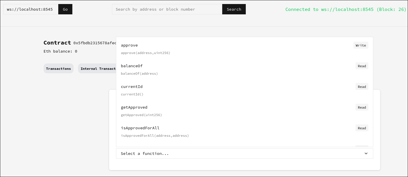 With it, you can quickly inspect anvil instances, navigate through addresses, contracts and transactions. And more importantly, you can interact with contracts, just as you would with ethui itself: